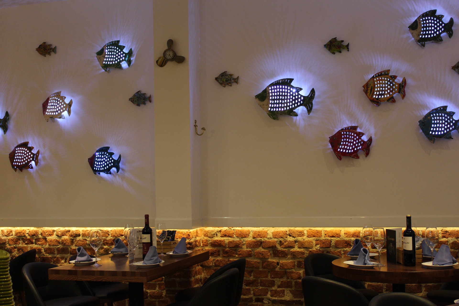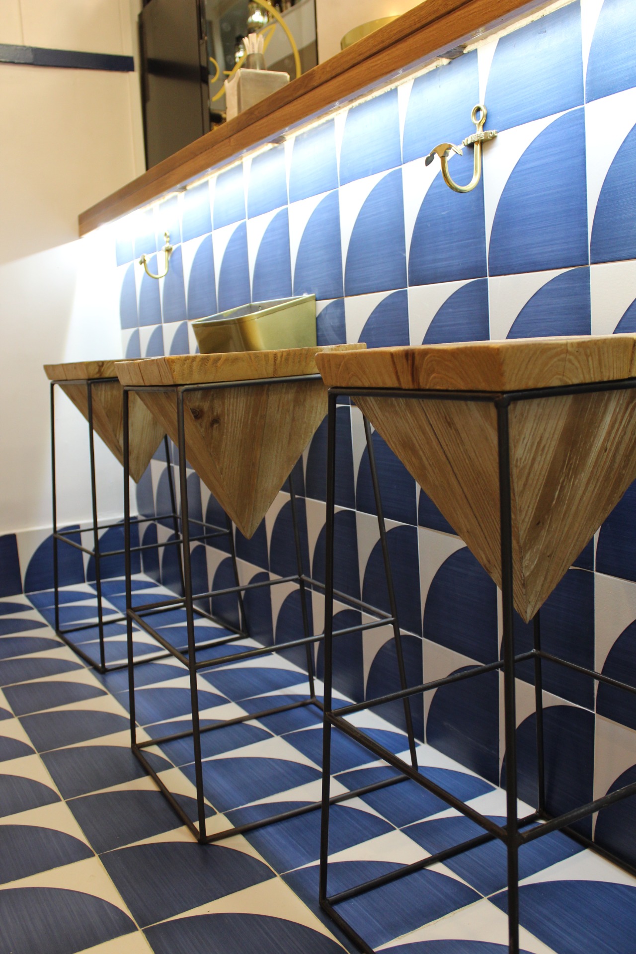 El restaurante cuenta con dos espacios, la zona del restaurante y la barra, ambas decoradas con sutiles toques visuales y acogedores colores inspirados en la bahía de Cádiz que dan al lugar una atmósfera ideal para una comida familiar o una degustación entre amigos.
